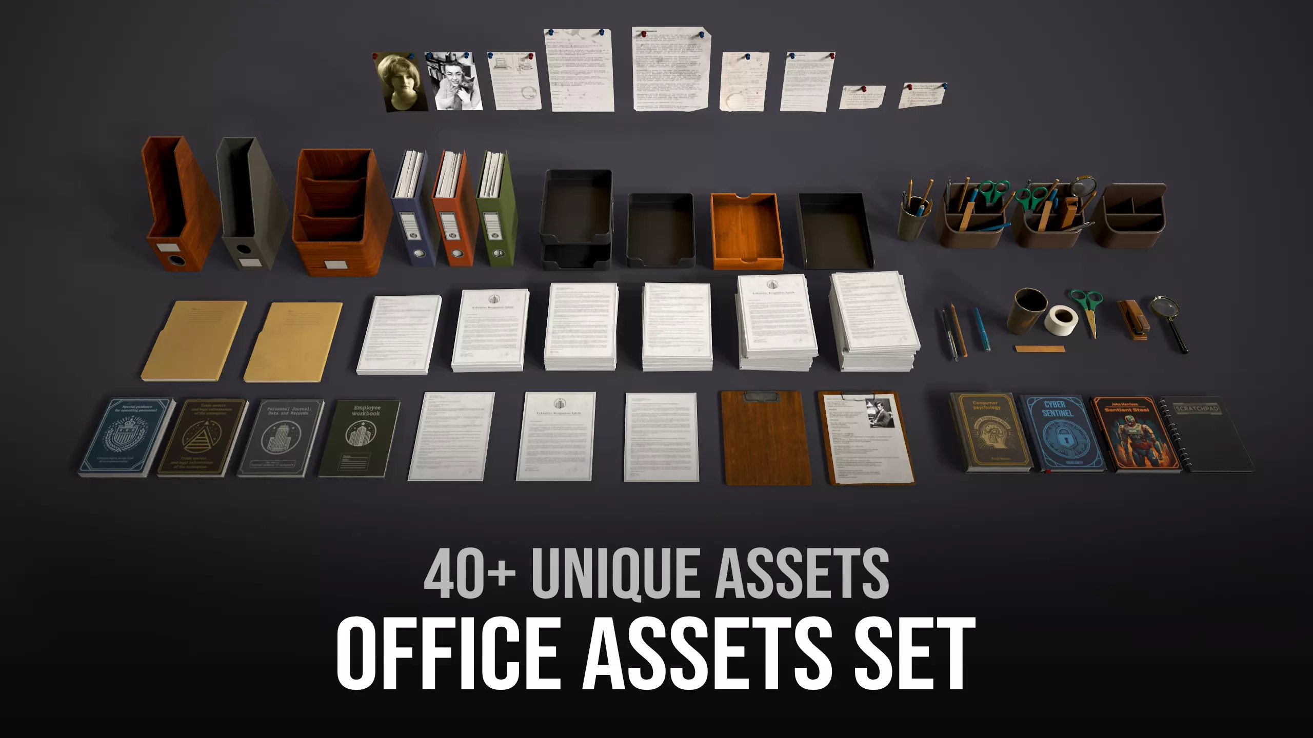 Polycount: Different polygons from 2 (sheet of paper) to 6047 (pen holder with tools inside) triangles