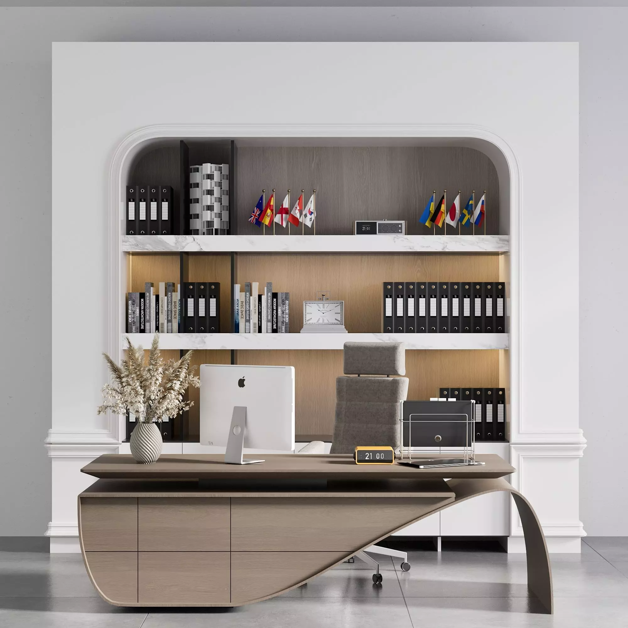 The model has material settings that define how surfaces look (color, shine, transparency, etc.).