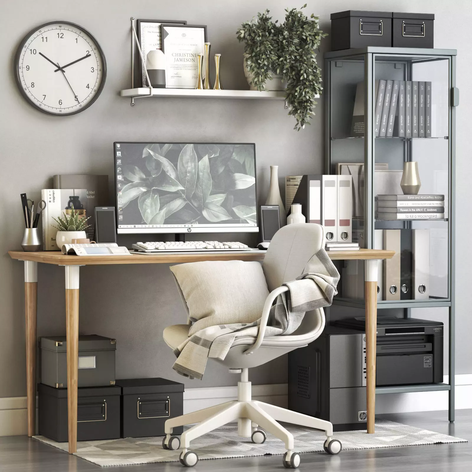 2. LÅNGFJÄLL Work chair with armrests, Gunnared beige / white.An office chair with lightly curved lines, attention to the sewn details and an easy-to-use mechanism hidden under the seat to highlight the design.