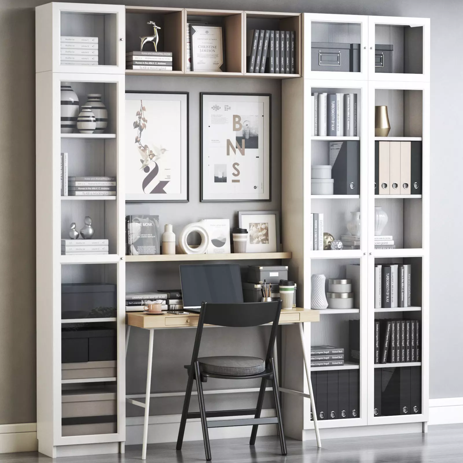 4. BILLY / OXBERG Shelving unit, white 80x30x237 cm.The rack is equipped with an additional top shelf: you can make the most of the wall surface. Glass doors protect your favorite items from dust.