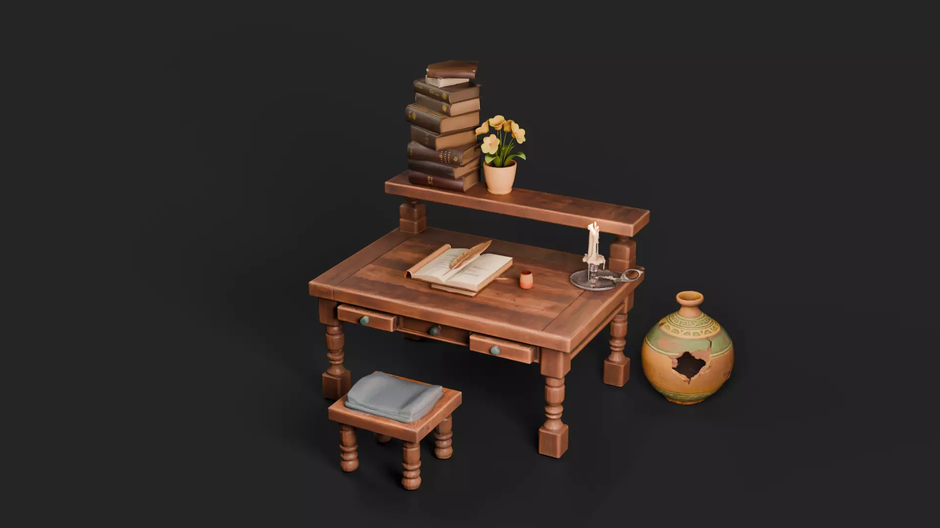 Stylized Desk-Set, Antique Office, Game Ready
