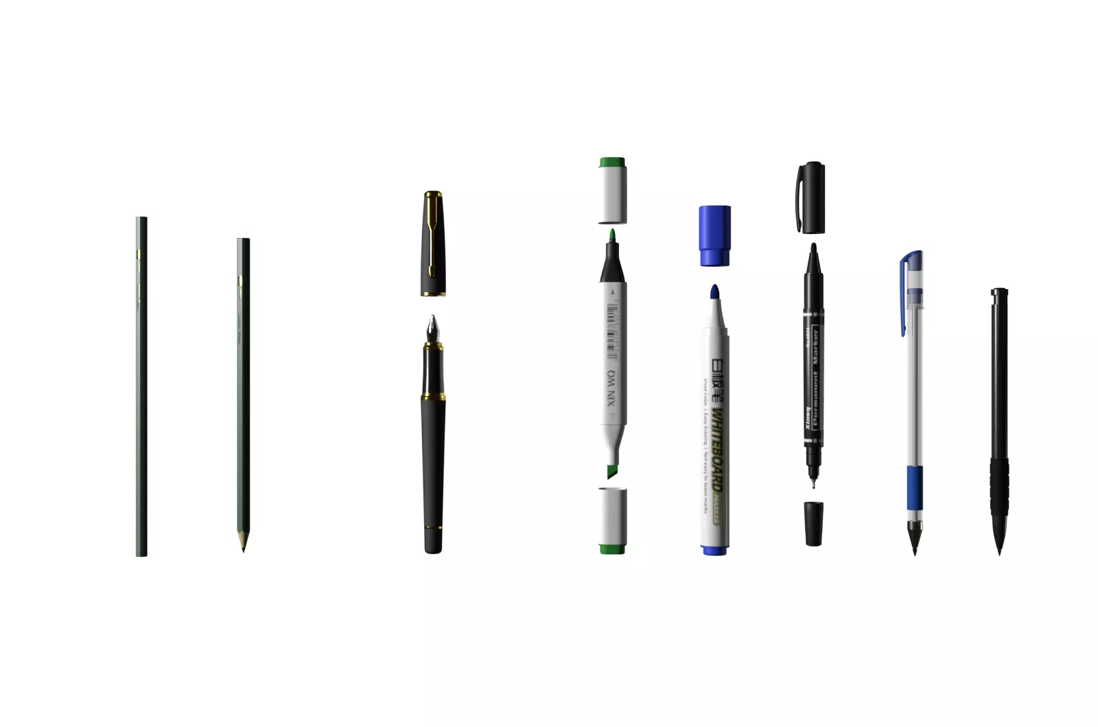 The model has material settings that define how surfaces look (color, shine, transparency, etc.).