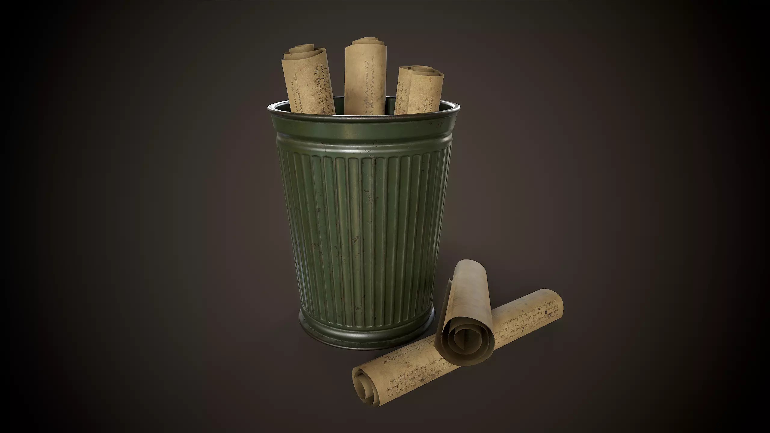 The bin can be displayed empty or filled with crumpled paper waste, adding versatility to your scene.