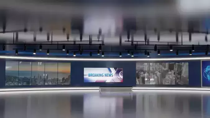 Photorealistic, high-quality model of 'Virtual TV News Studio' Originally modeled in Blender 4.1. The model is suitable for Ultra HD rendering and ready for close up shots advertising, design visualization, etc . The model rendering quality is shown in product previews.