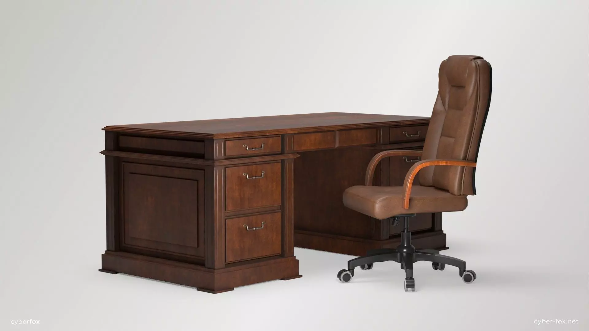 Wooden Desk and Chair Low-poly 3D model