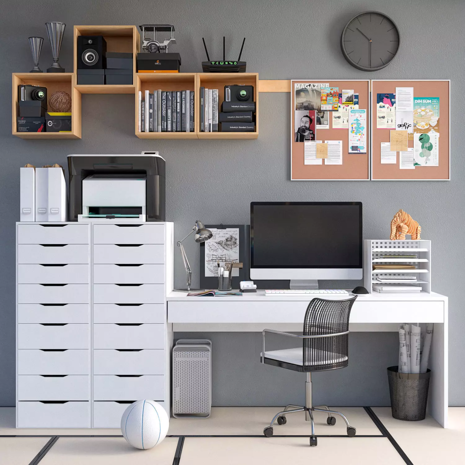 The model has material settings that define how surfaces look (color, shine, transparency, etc.).