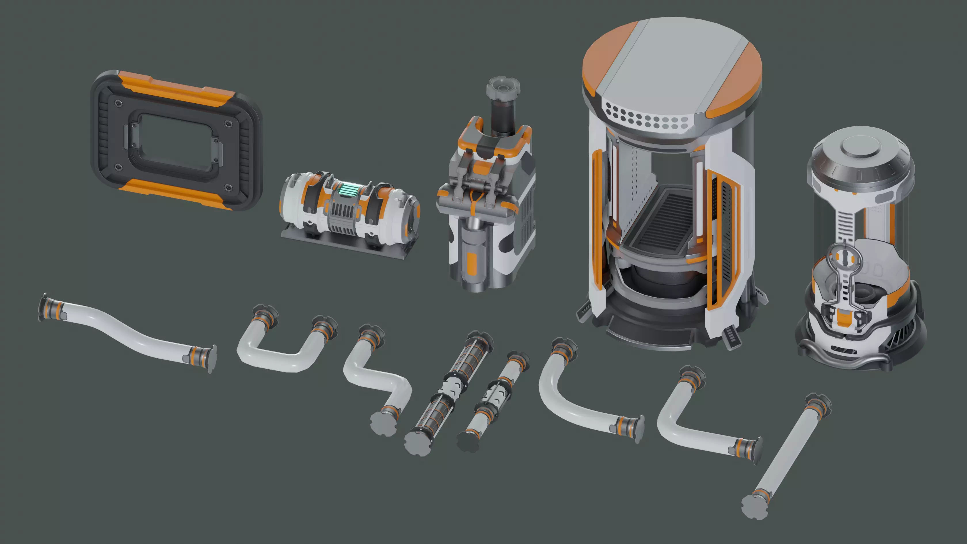 This is a 13 props 3D models asset pack of sci-fi props for interior/exterior environment building, concept art, game, VR...