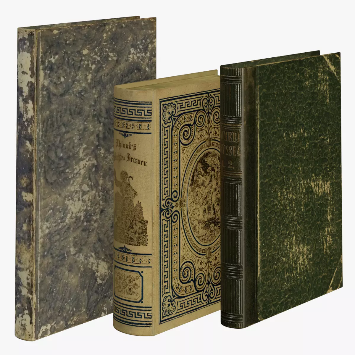 3 worn ancient books for universal use.