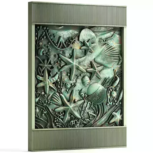 3D Wall Sculptures 03 is a high-quality decorative wall panel designed as an artistic relief inspired by underwater and marine elements.The sculptural composition features a rich arrangement of starfish, shells, coral forms, and organic textures, all integrated into a cohesive relief surface that adds depth, rhythm, and visual storytelling to interior spaces.
