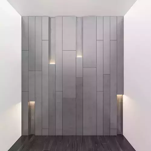 3d wall panel for interior design.including lights , made by gray stone with a real reflect on it and it can be expanded. suitable for using in lobey ,sitting room hall bedroom office and etc. the wide of panels are 20cm and 40cm in a random organization.