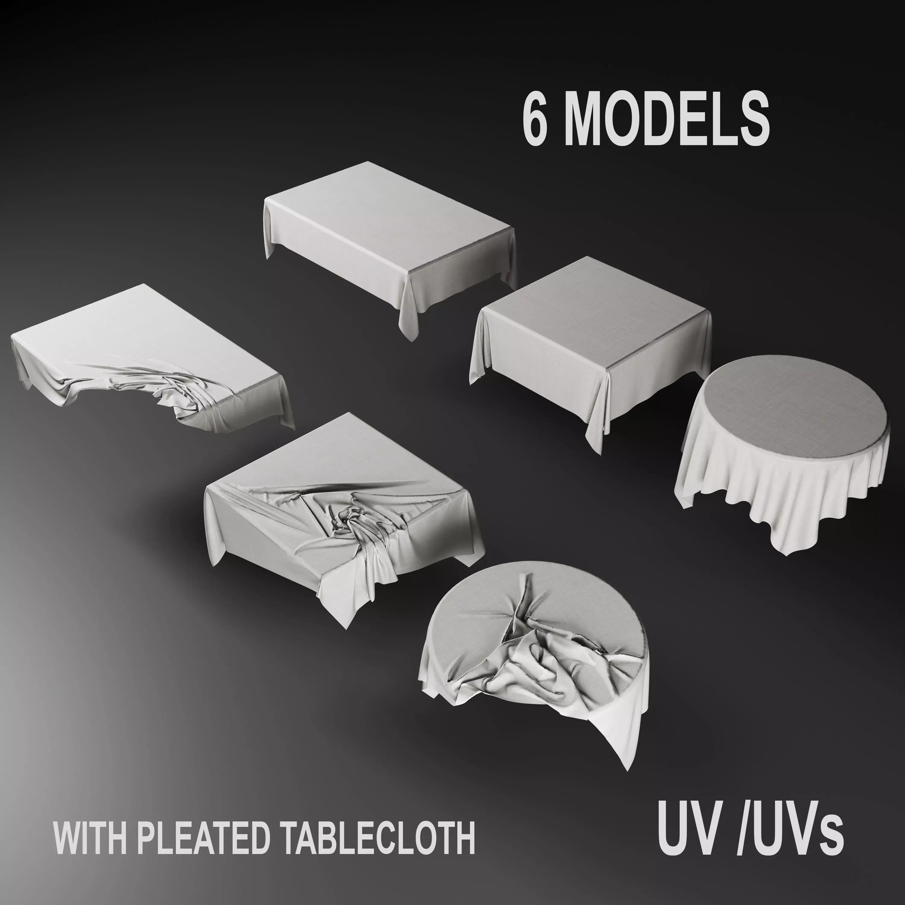 6 Models with pleated tablecloth Low-poly 3D model
