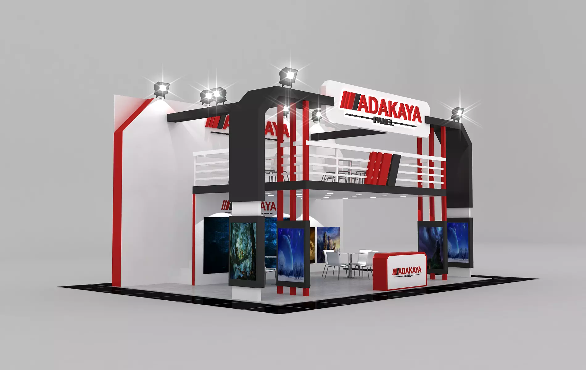Stall Size 9m x6 m Height 500 cm - 3 Side open - Store- Reception table