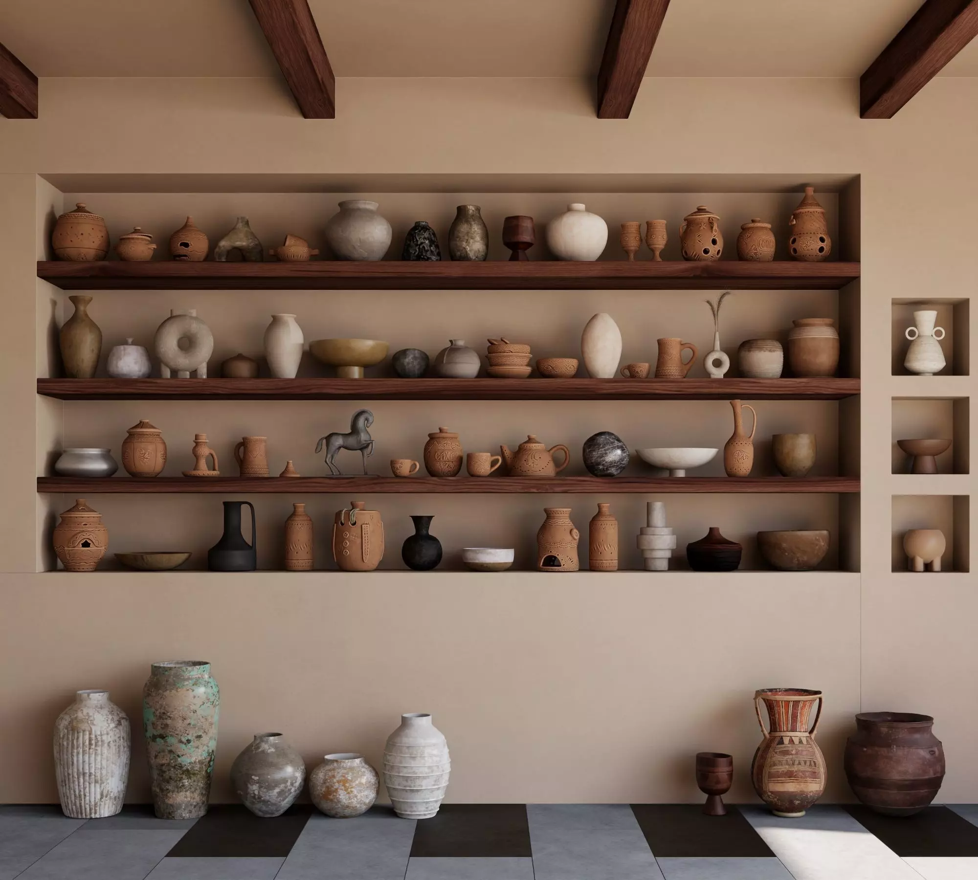 Infuse your architectural visualizations with soulful, historical character using this extensive collection of primitive pottery and artisan decorative objects. This set features over 50 unique variations of ceramic vessels, ancient-style urns, rustic teapots, and small sculptures, all showcasing rich, weathered textures and organic earthy tones. Perfectly suited for high-end Wabi-sabi interiors, historical museum displays, and Mediterranean-themed retail or hospitality spaces.