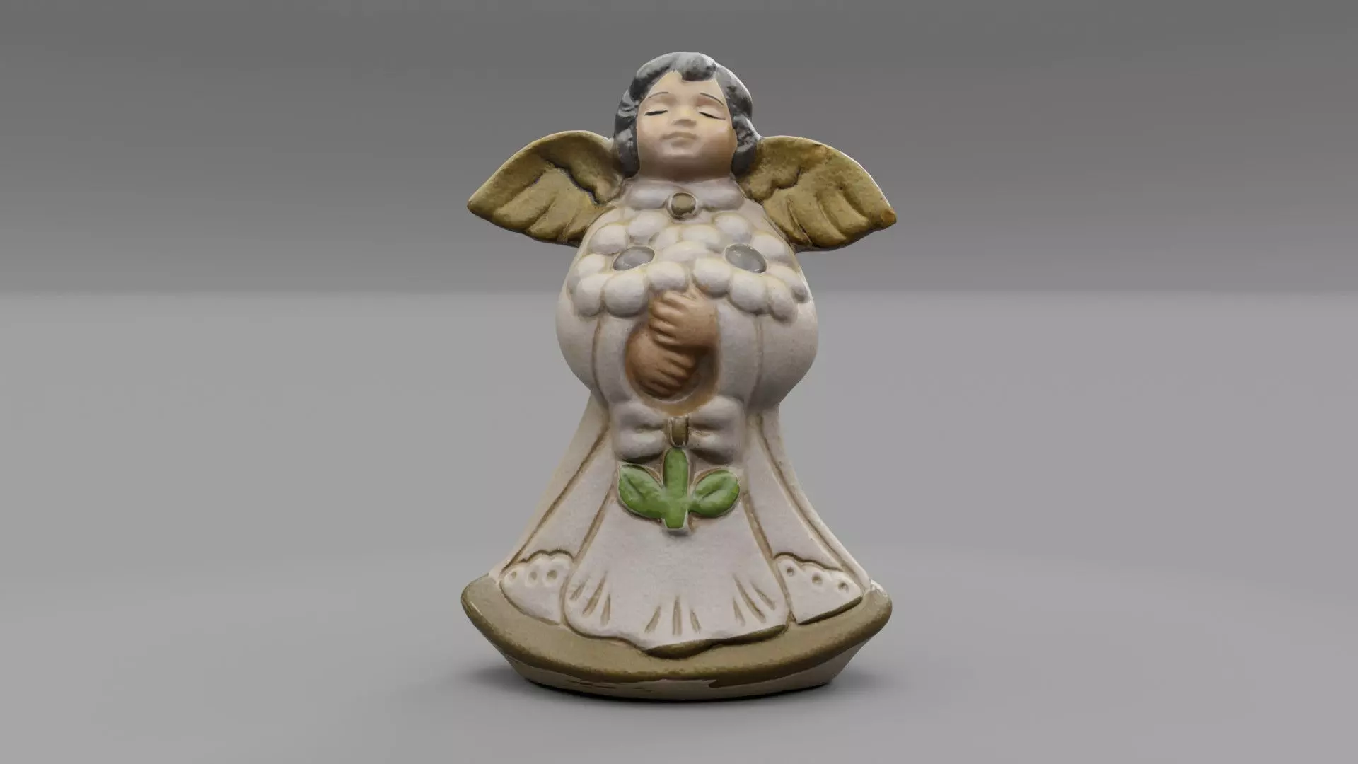 This is a photorealistic low-poly 3D model of the handmade Angel poor art statuette.