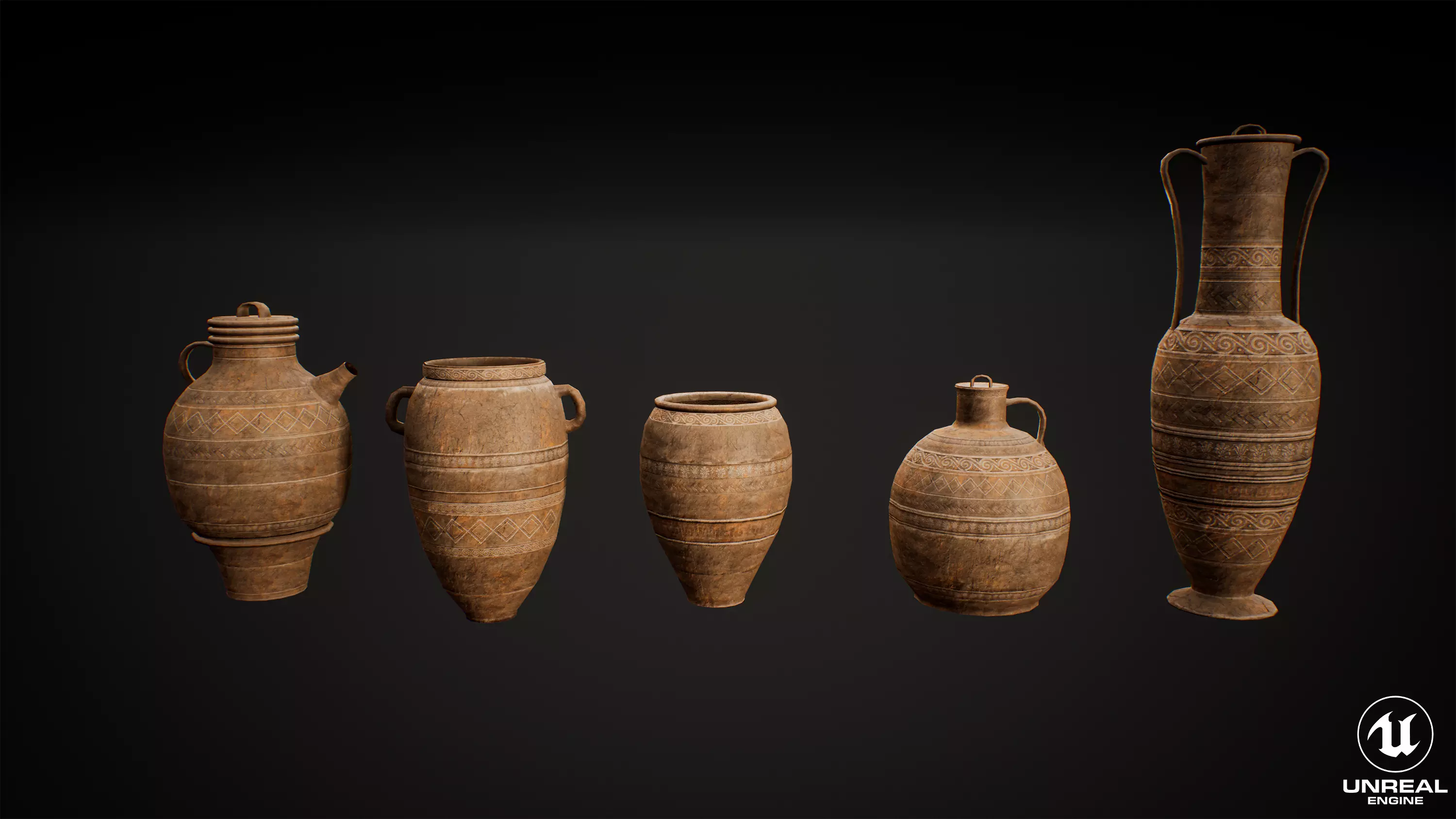 Low Poly Greeck Old Vases pack with only 1 trim material.
