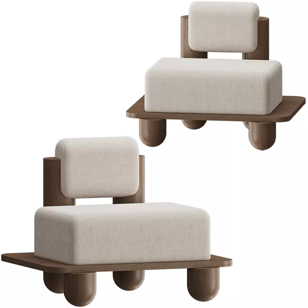Showcase cutting-edge style with this Architectural Platform Lounge Chair 3D Model. Featuring a broad, floating walnut wood base, chunky rounded block cushions, and bold spherical legs, this chair is designed for modernist and postmodern interiors. Its neutral beige fabric and sculptural forms make it a centerpiece for luxury residential, gallery, or boutique hotel visualization and virtual staging.