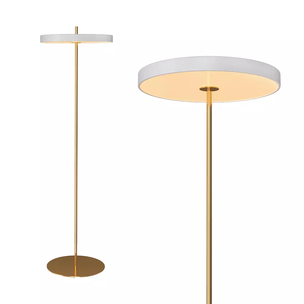 Description:High-Quality 3D Model of Asteria Floor LampThis is a highly detailed 3D model of the iconic Asteria Floor Lamp, featuring a sleek and modern Scandinavian-inspired design. It includes a golden metallic stem, circular brass base, and a disc-shaped white diffuser with subtle lighting to create a warm glow.