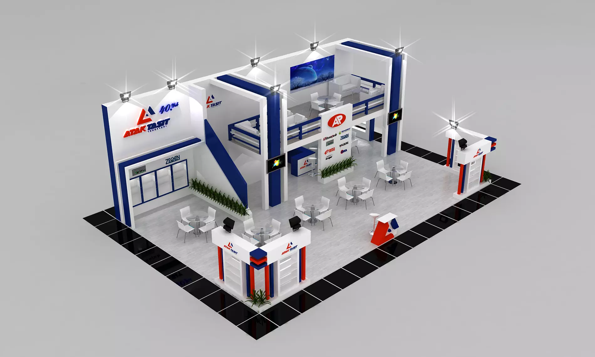 Stall Size 14 m x 9 m Height 500 cm - 3 Side open - Store- Reception table- TV