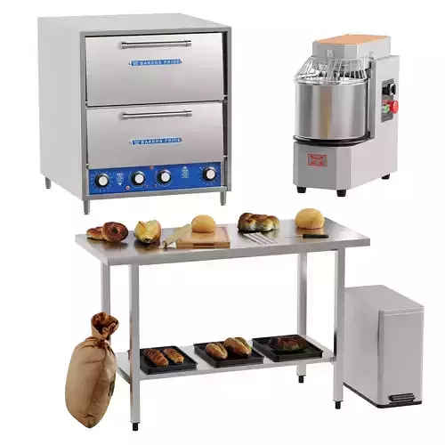 Bakery Set 1 EquipmentOven,Dough MixerBreadsDeskFbx,objCorona And VrayBlender Cycles
