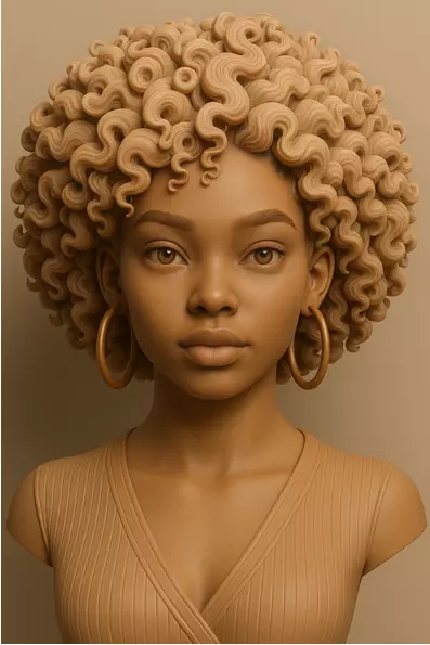 In this striking piece of art, the artist masterfully breathes life into wood, capturing the essence of beauty, strength, and grace. This wooden bas-relief features a young woman whose serene yet dignified expression conveys a quiet power. Her voluminous, coiled hair, piercing eyes, and minimalist yet elegant attire embody a natural majesty that is both timeless and profound. Every delicate detail — from the texture of the skin to the organic form of each curl — has been meticulously sculpted, creating a presence so lifelike that one might expect her to speak at any moment.