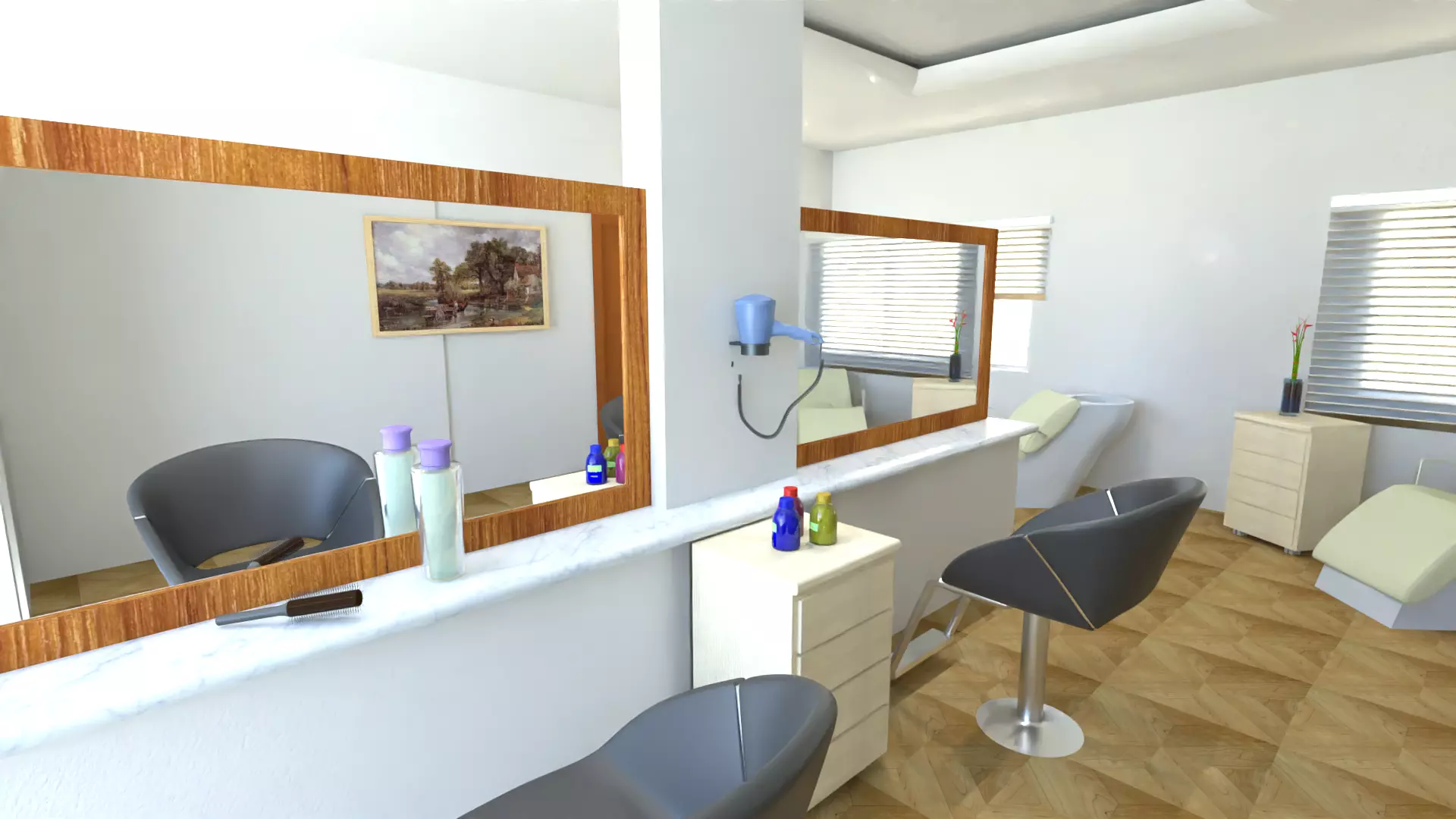 The model has material settings that define how surfaces look (color, shine, transparency, etc.).
