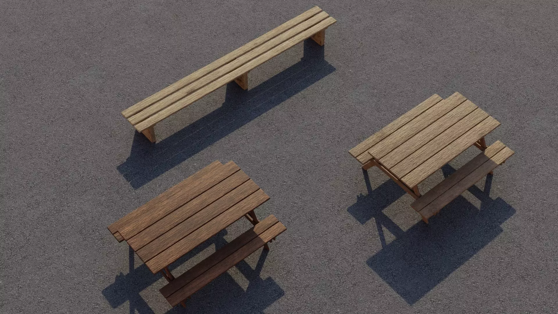 Bench Low-poly 3D wooden picnic table Low-poly 3D model