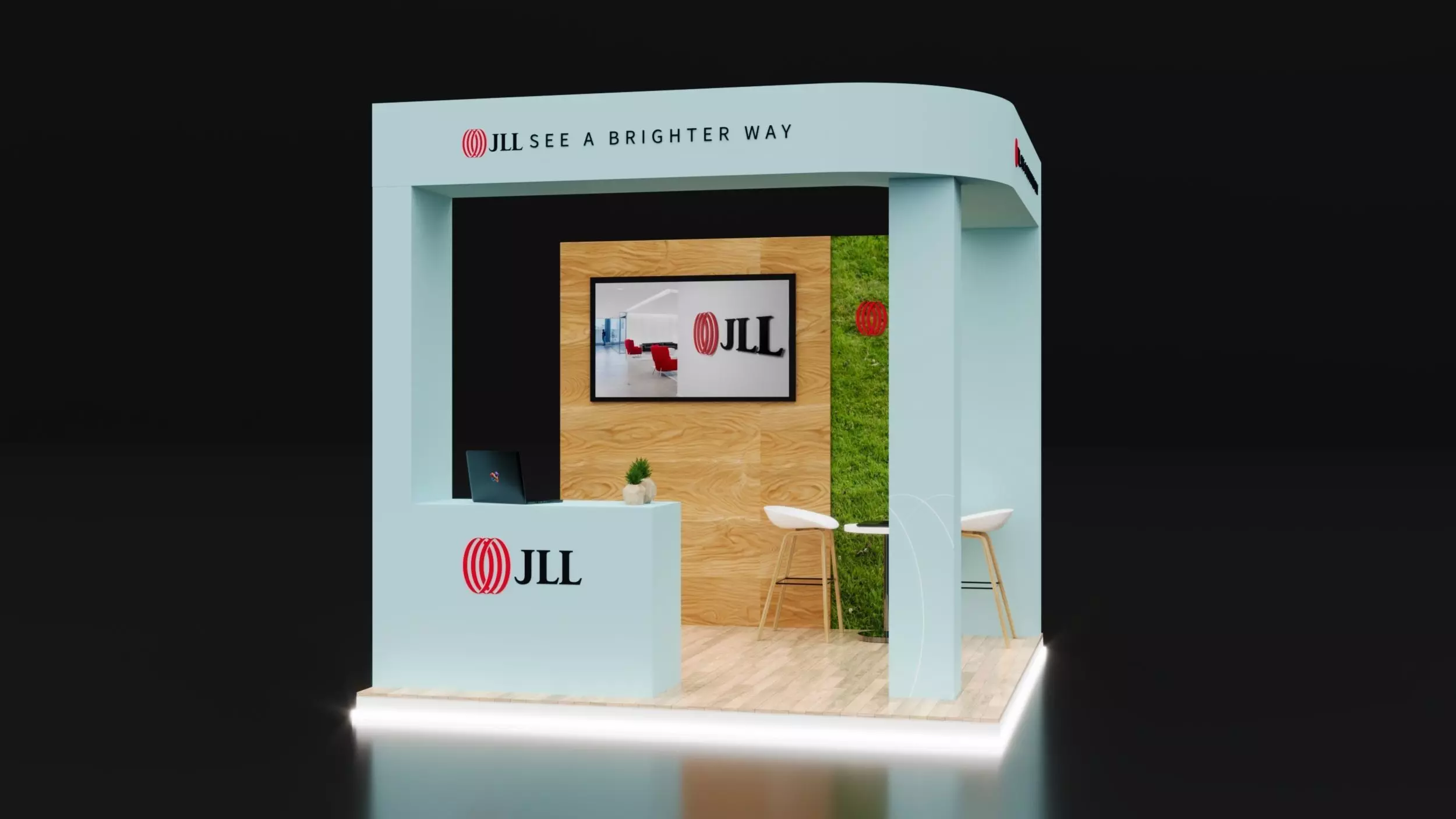 This is an exhibition booth design what you can ajdust and use for your required design. I created this with 3ds max 2022 and all the rendering settings are included. adjust your size and render. Branding you will have to and make it more beasutiful.
