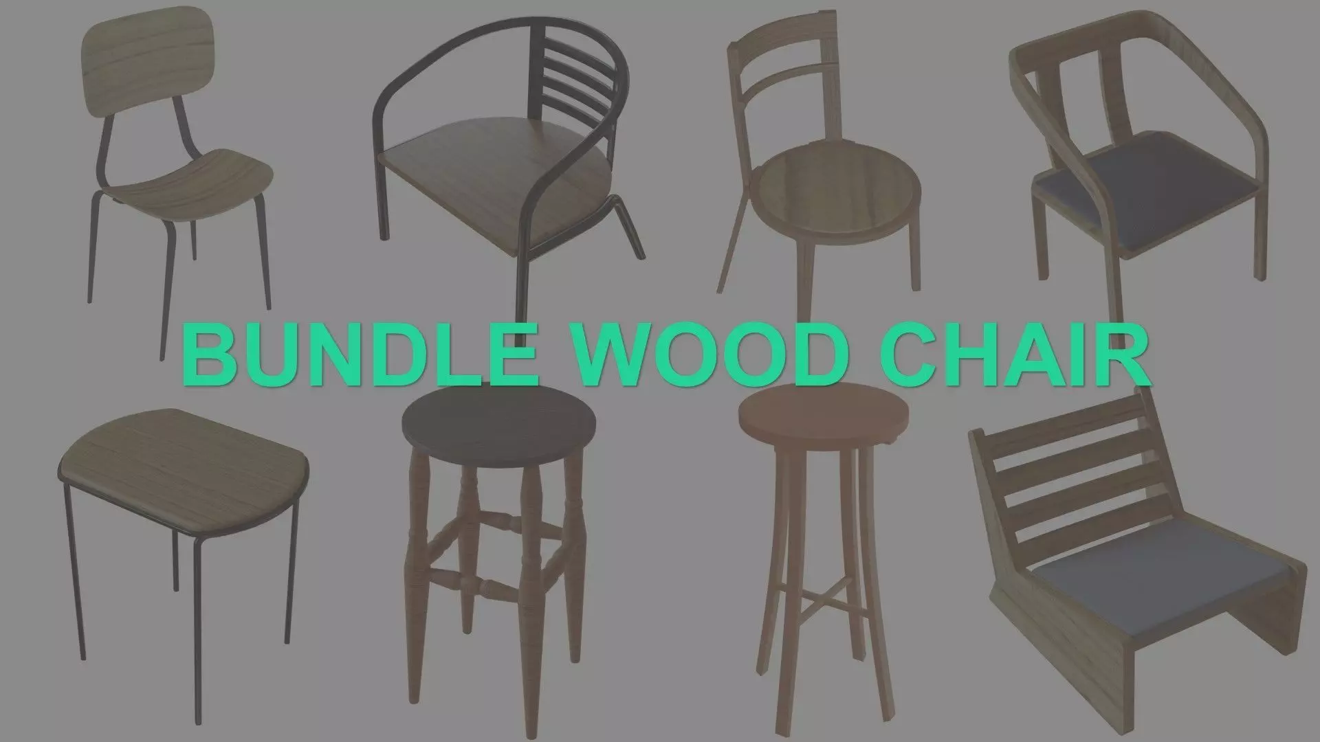 BUNDLE WOODEN CHAIRThere are 8 different types of wooden chairs using uv map texture and different format file.Blend.Dae.Fbx.Stl.Obj