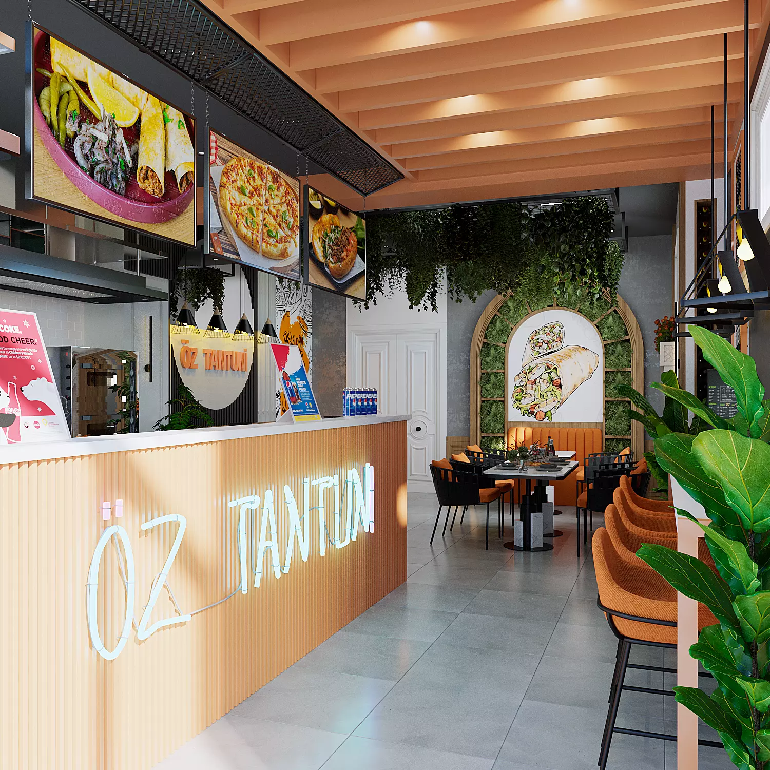 This is a high-quality Cafe & Restaurant interior design scene, created with a focus on atmosphere, functionality, and modern hospitality aesthetics. The design is suitable for commercial interior visualization, restaurant concepts, and client presentations.