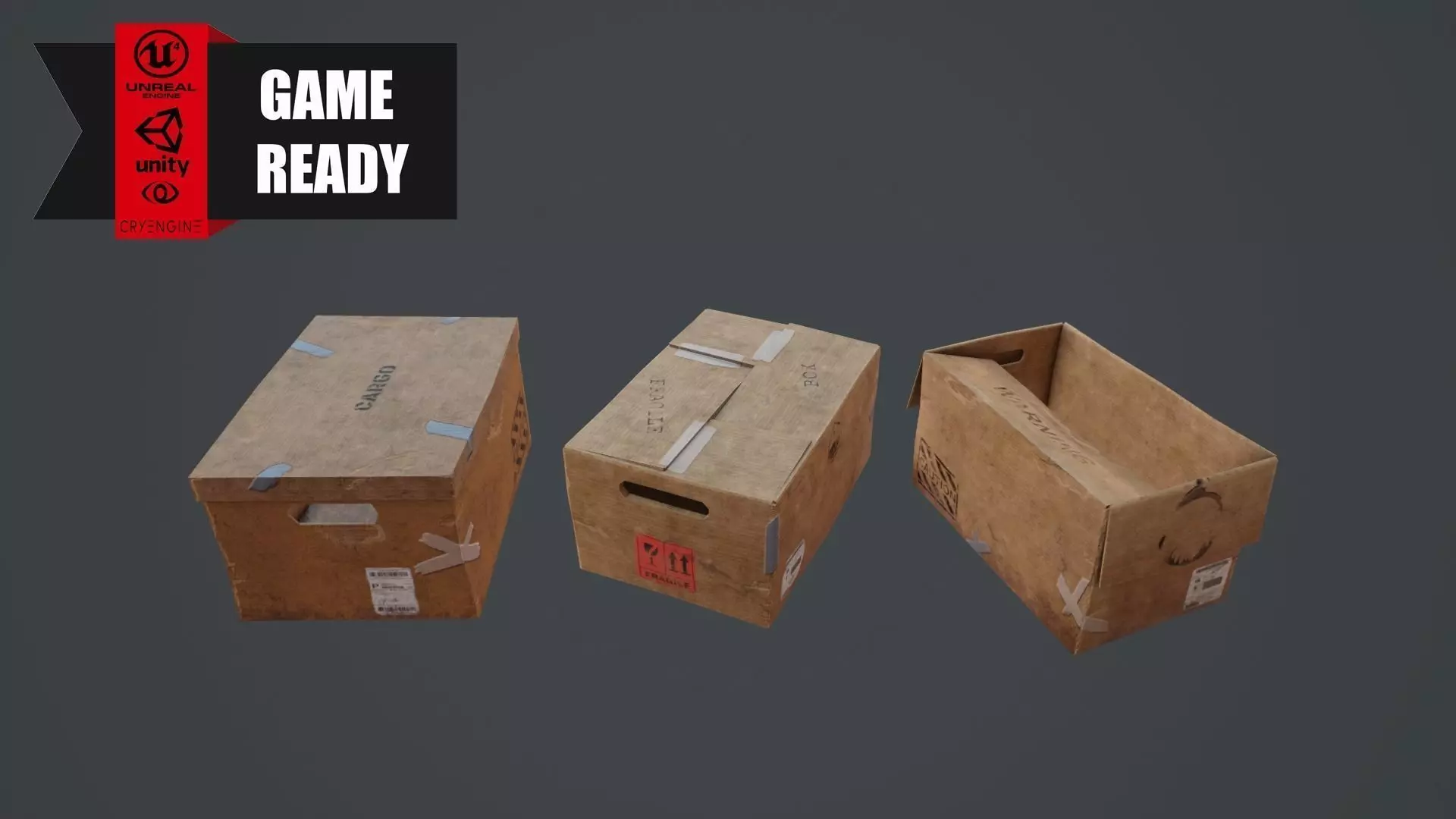 3 different lowpoly - high quality - game ready cardboard models.