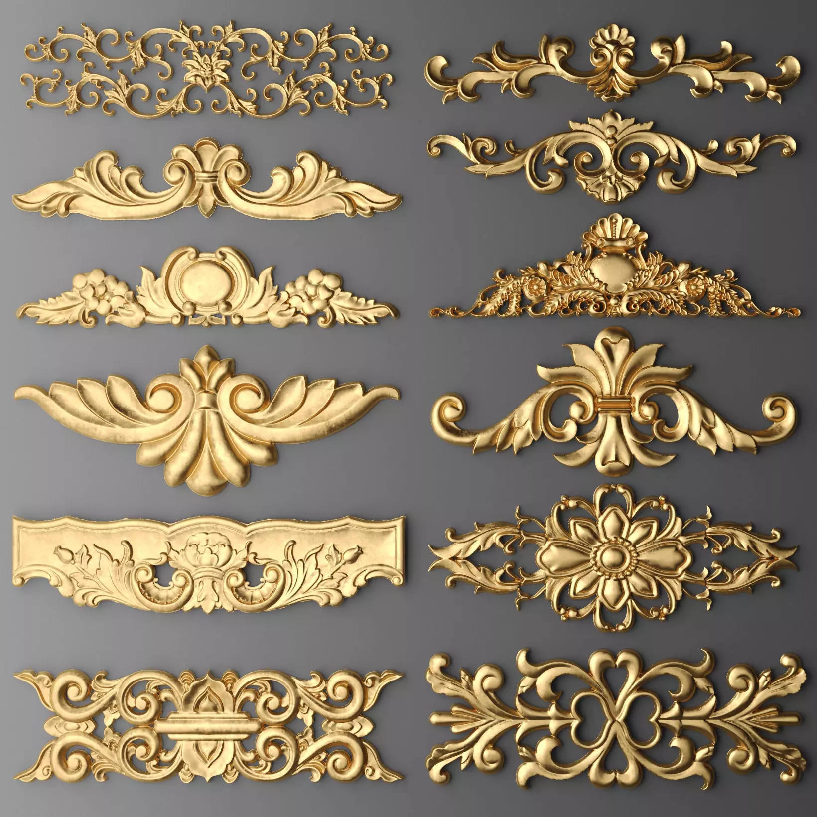 Cartouches SET 6 decorative ornaments in gold 3D model
