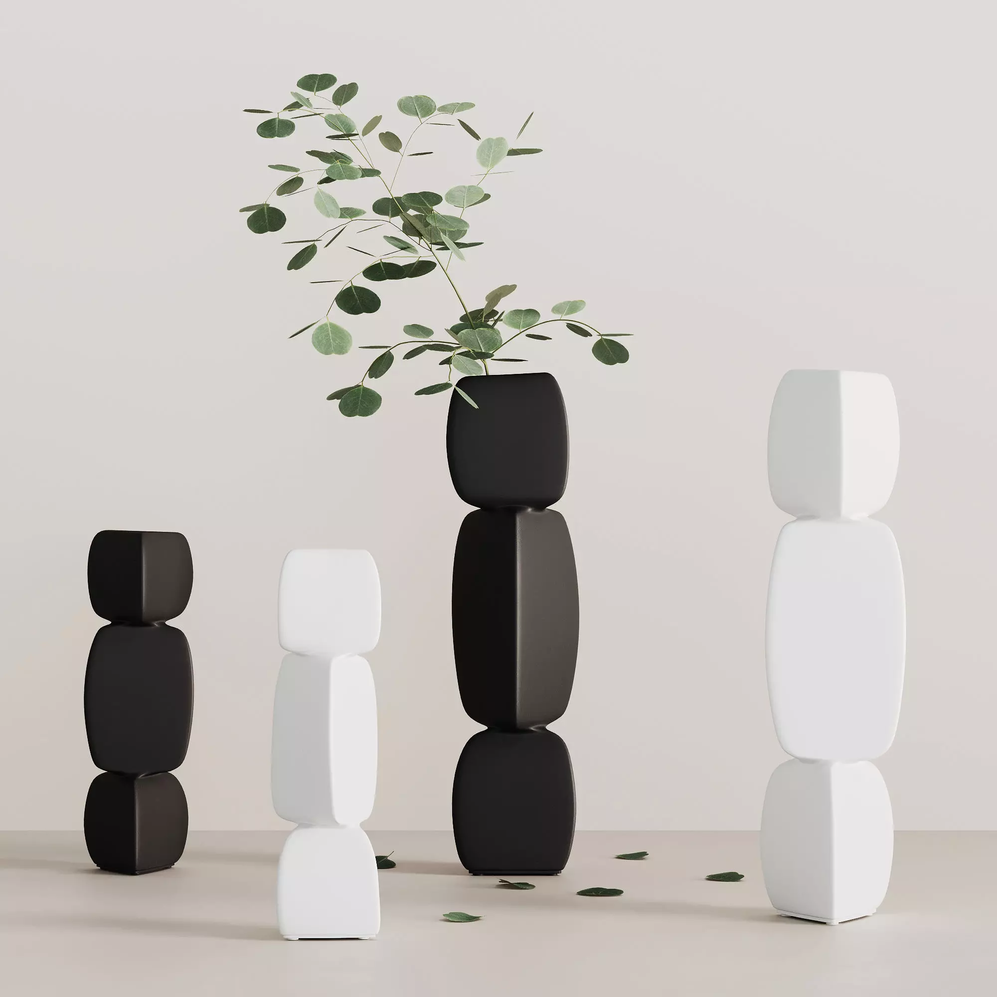 Discover a stunning collection of sculptural ceramic vases designed in an asymmetrical, modern style. Drawing inspiration from Nordic aesthetics, these vases seamlessly blend art and functionality, making them ideal for contemporary interiors. Each vase features clean, minimalist lines and realistic ceramic materials, perfect for high-quality 3D visualization projects.