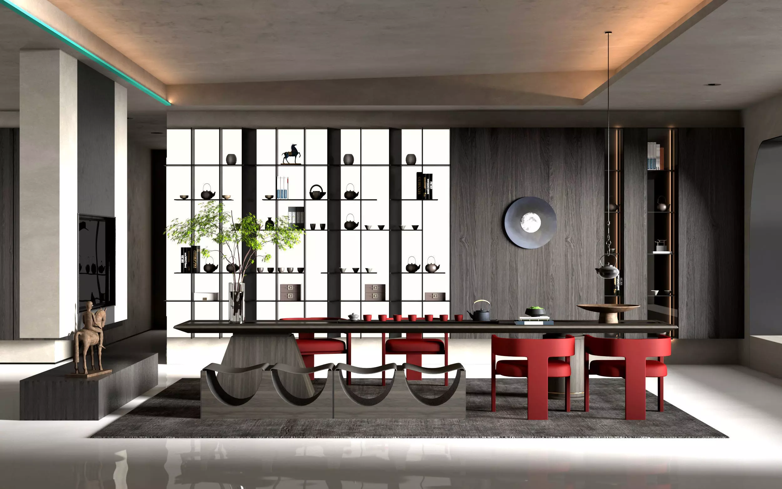 The model has material settings that define how surfaces look (color, shine, transparency, etc.).