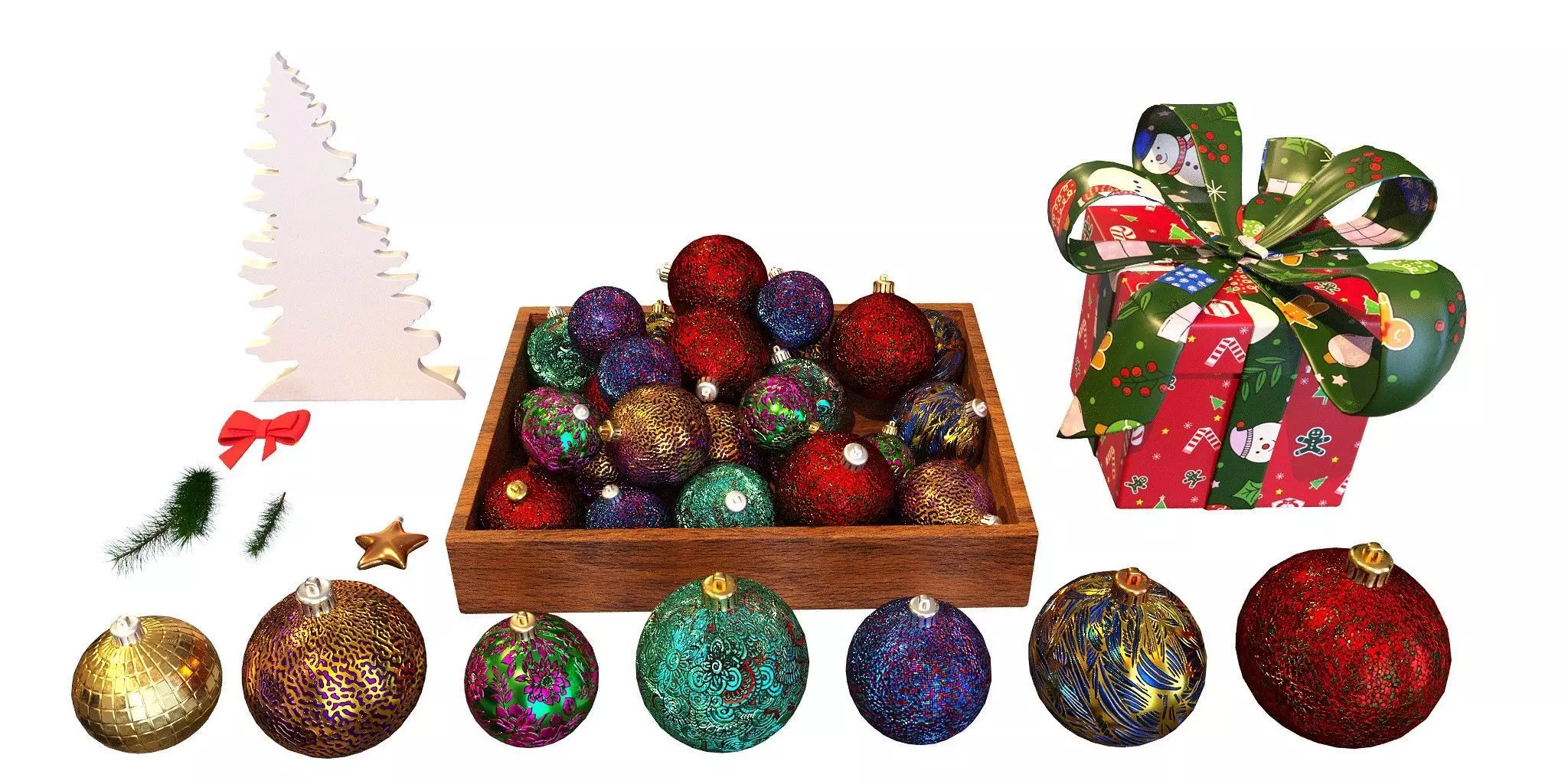 Main Idea/value of project was to create a big variety of christmas decoration.3D Models made in 2016 max, saved as 2013 scene file + 3DS,OBJ,FBX,Blender2.92, Rendered in Corona 2.0Quads & Triangles, and Real-world scale, Units(mm), all objects are made according to references.Models have simple materials maps componence (1k/2k/4k) + material library file for Corona10 / Vray5.2 / BlenderPivot point in center or bottom of objects.