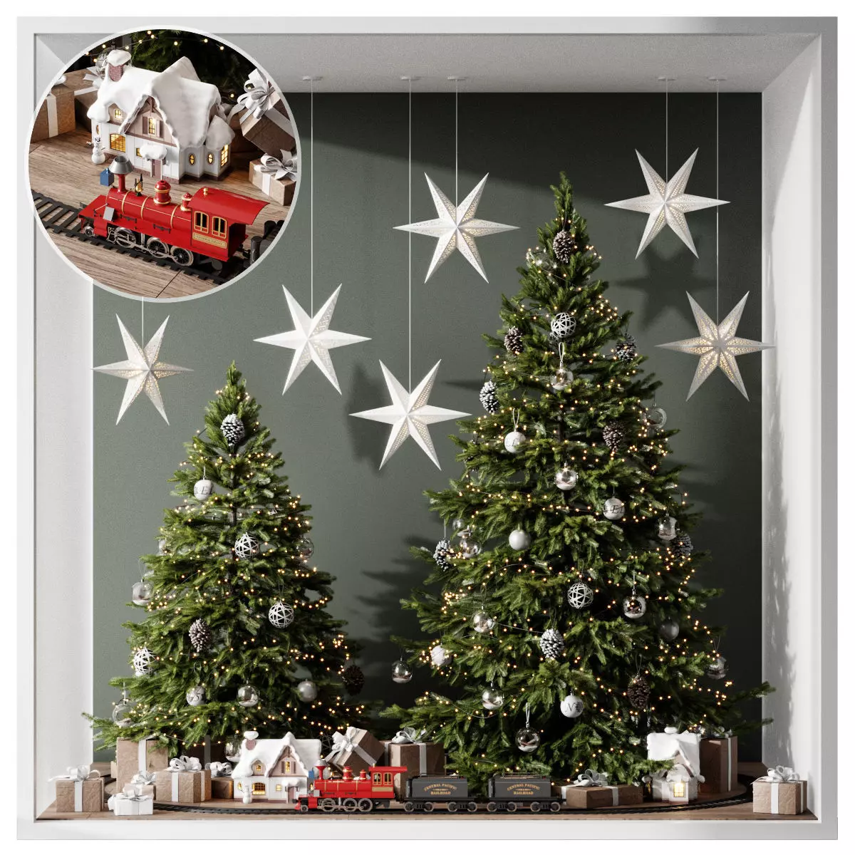 Christmas set 2 trees in window 3D model