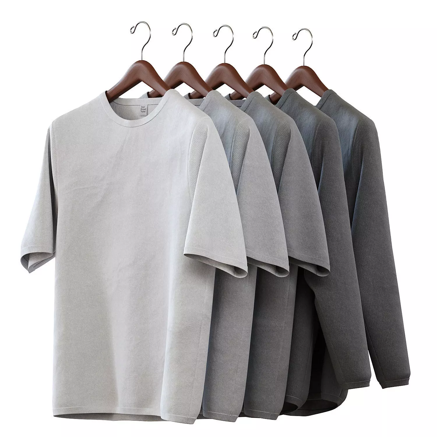 Clothes. T-shirts 01Set of T-shirts and sweaters with hangers for wardrobe. Color - 4 shades of gray.The objects are separate and can be imported into other 3D programs.