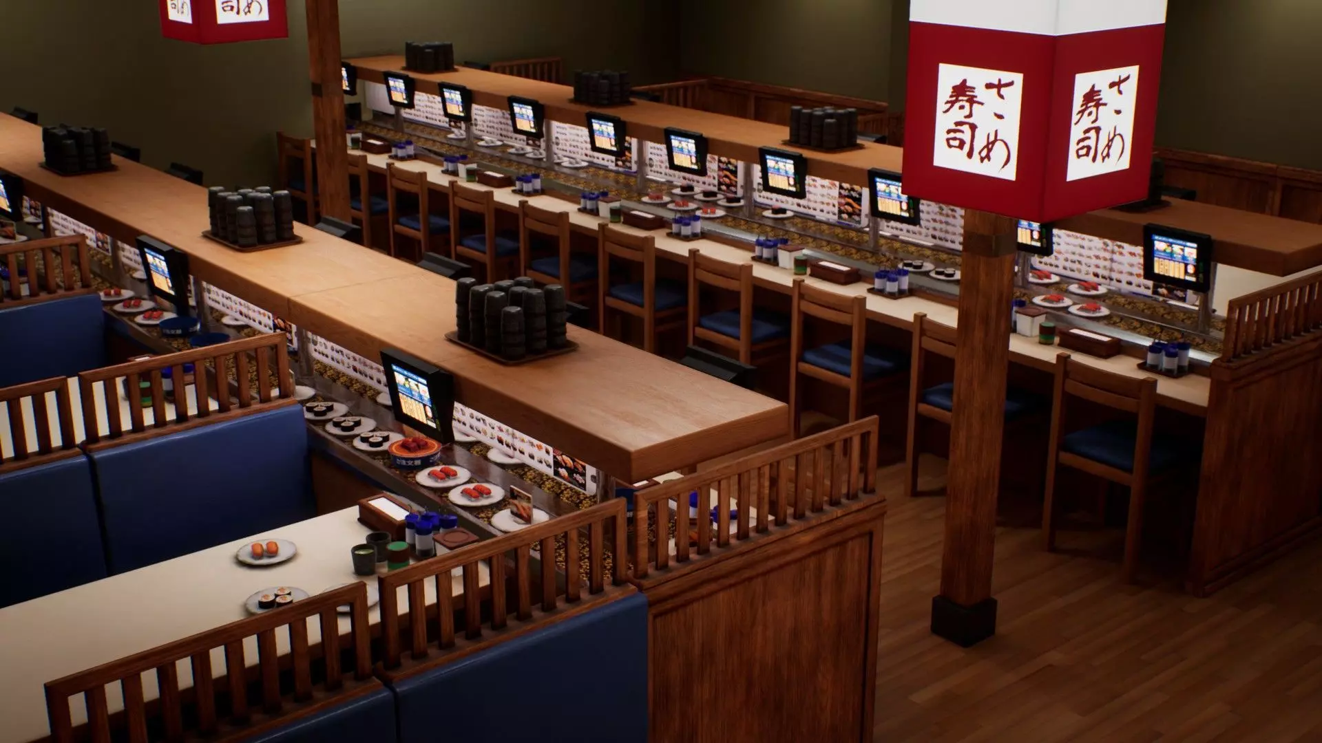 Contains the scene and 40 assets and various material variants to recreate beautiful and realistic Conveyor Belt Sushi restaurants.
