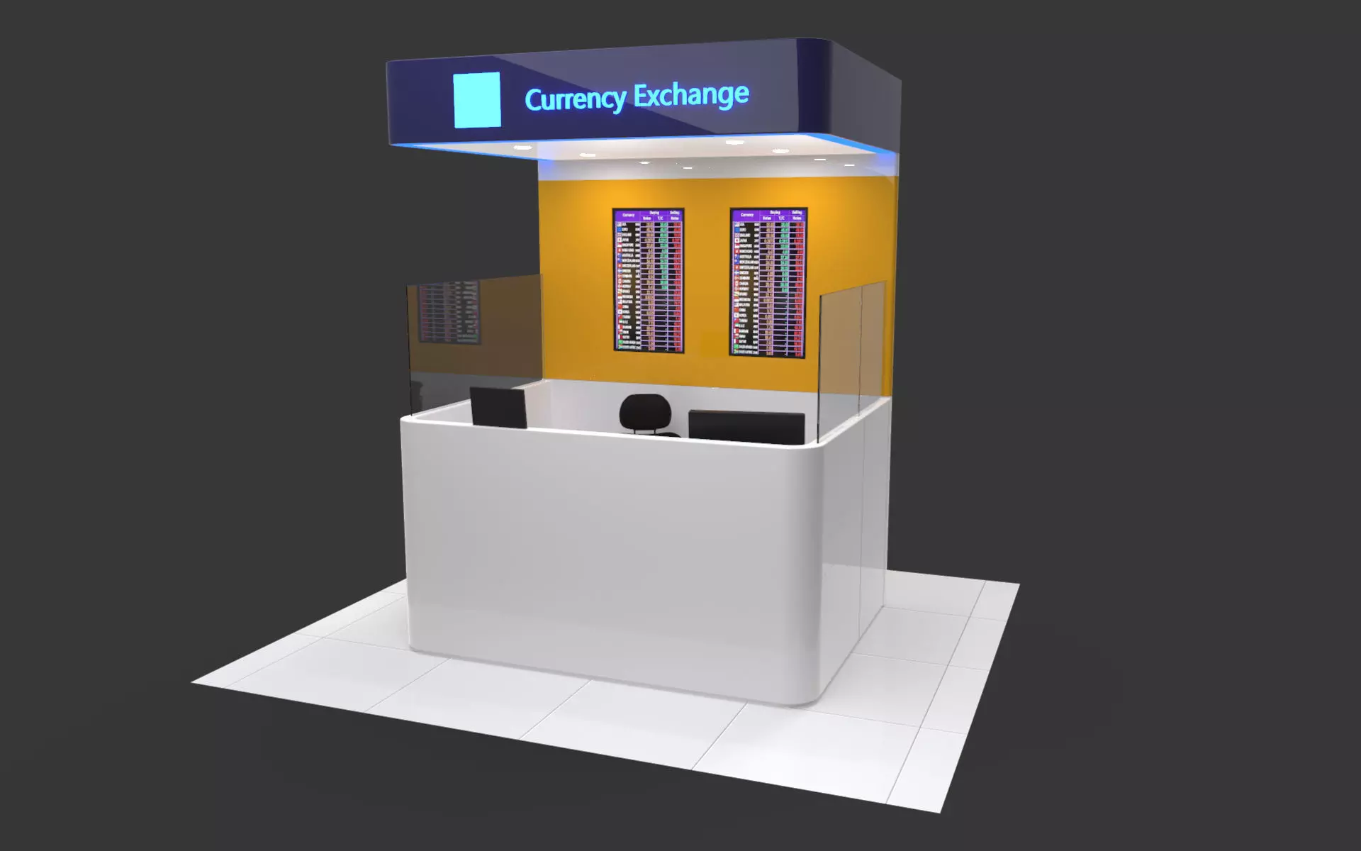 The scene contains the geometry with simple materials, textures of the floor and display are also included.