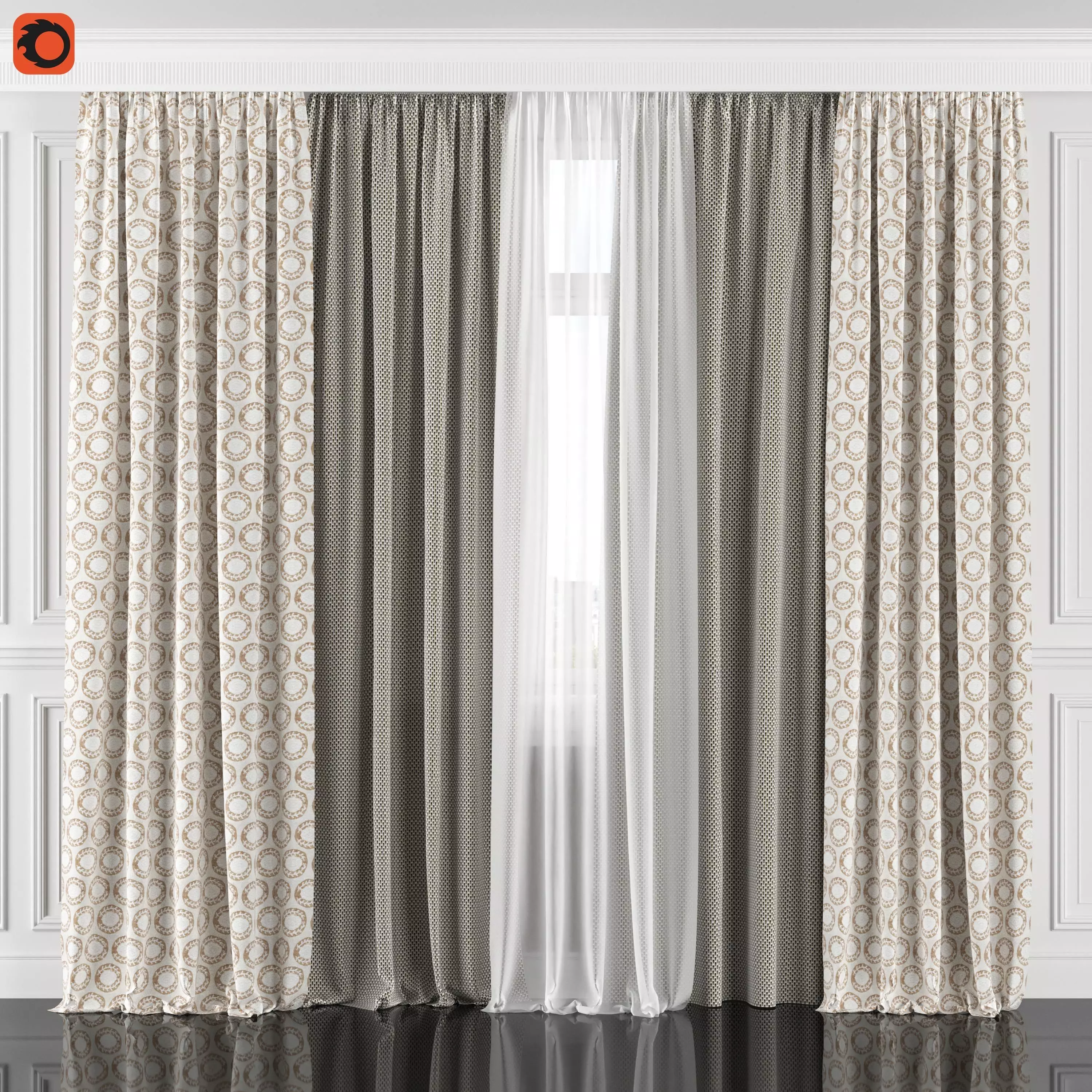 3D model of curtains and window. Curtains are suitable for any interior design of houses, apartments, bedrooms and living rooms.