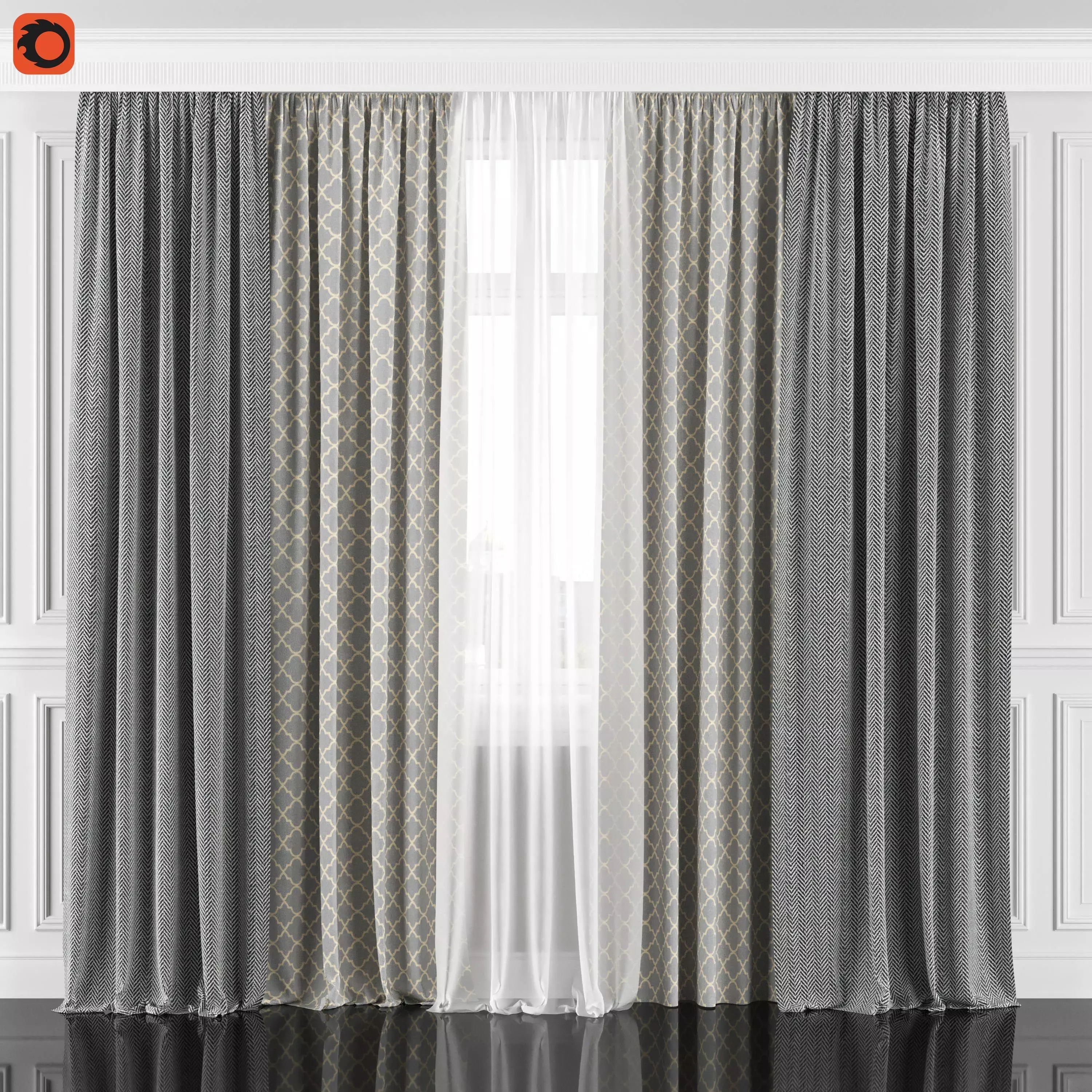 3D model of curtains and window. Curtains are suitable for any interior design of houses, apartments, bedrooms and living rooms.