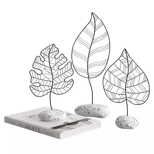 This decor wire leaves on peebles with book is ideal for the interior/exterior of an apartment.File contains three different wire leaves.