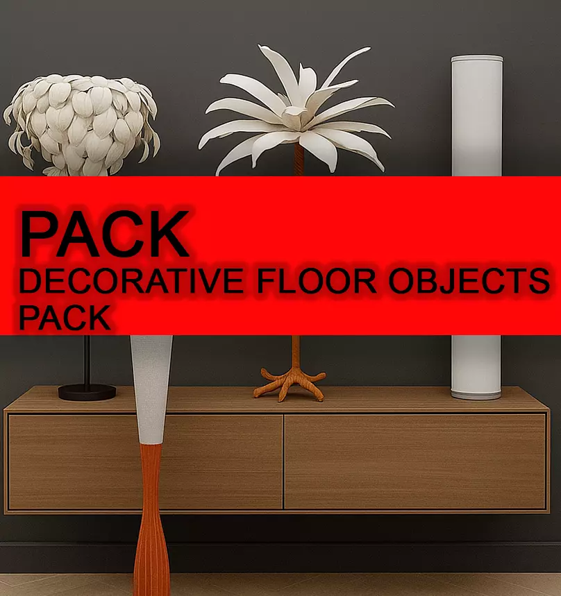 A curated collection of high-quality 3D models designed to bring style, elegance, and personality to any interior scene.This pack includes a variety of decorative floor objects — from sculptural lamps and pedestals to woven baskets and artistic accents. Each model is crafted with clean geometry and realistic proportions, making them ideal for architectural visualizations, lifestyle renders, virtual staging, and concept design.Perfect for:• Interior designers and archviz professionals• Stylized renders and design showcases• Virtual showrooms and furniture mockupsPack includes:• 8 unique floor decor models• Ready-to-use formats: .FBX, .OBJ, .GLB• Optimized geometry, clean topology, UV-unwrappedAll models can be used as-is or customized to fit your project style. Compatible with most 3D applications and render engines.
