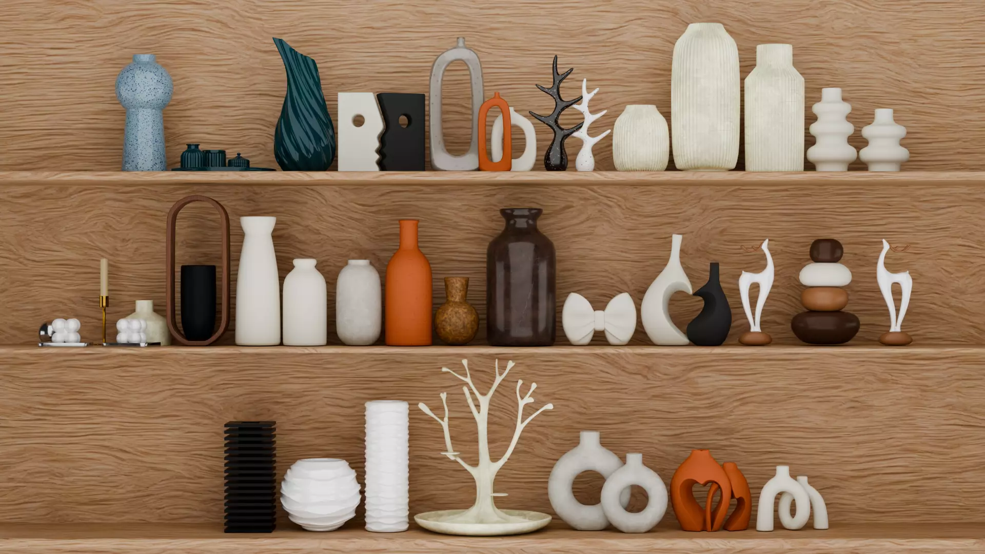 The model has material settings that define how surfaces look (color, shine, transparency, etc.).