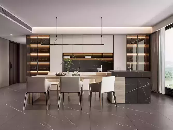 The 3D model includes a beautifully designed dining table set with chairs, elegant lighting fixtures, stylish decor elements, and realistic textures that add depth and authenticity to your scenes. Whether you're an architect, interior designer, or a 3D artist working on architectural visualization, this model provides you with a versatile and ready-to-use asset.