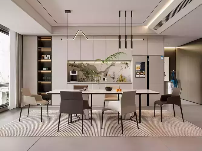The 3D model includes a beautifully designed dining table set with chairs, elegant lighting fixtures, stylish decor elements, and realistic textures that add depth and authenticity to your scenes. Whether you're an architect, interior designer, or a 3D artist working on architectural visualization, this model provides you with a versatile and ready-to-use asset.