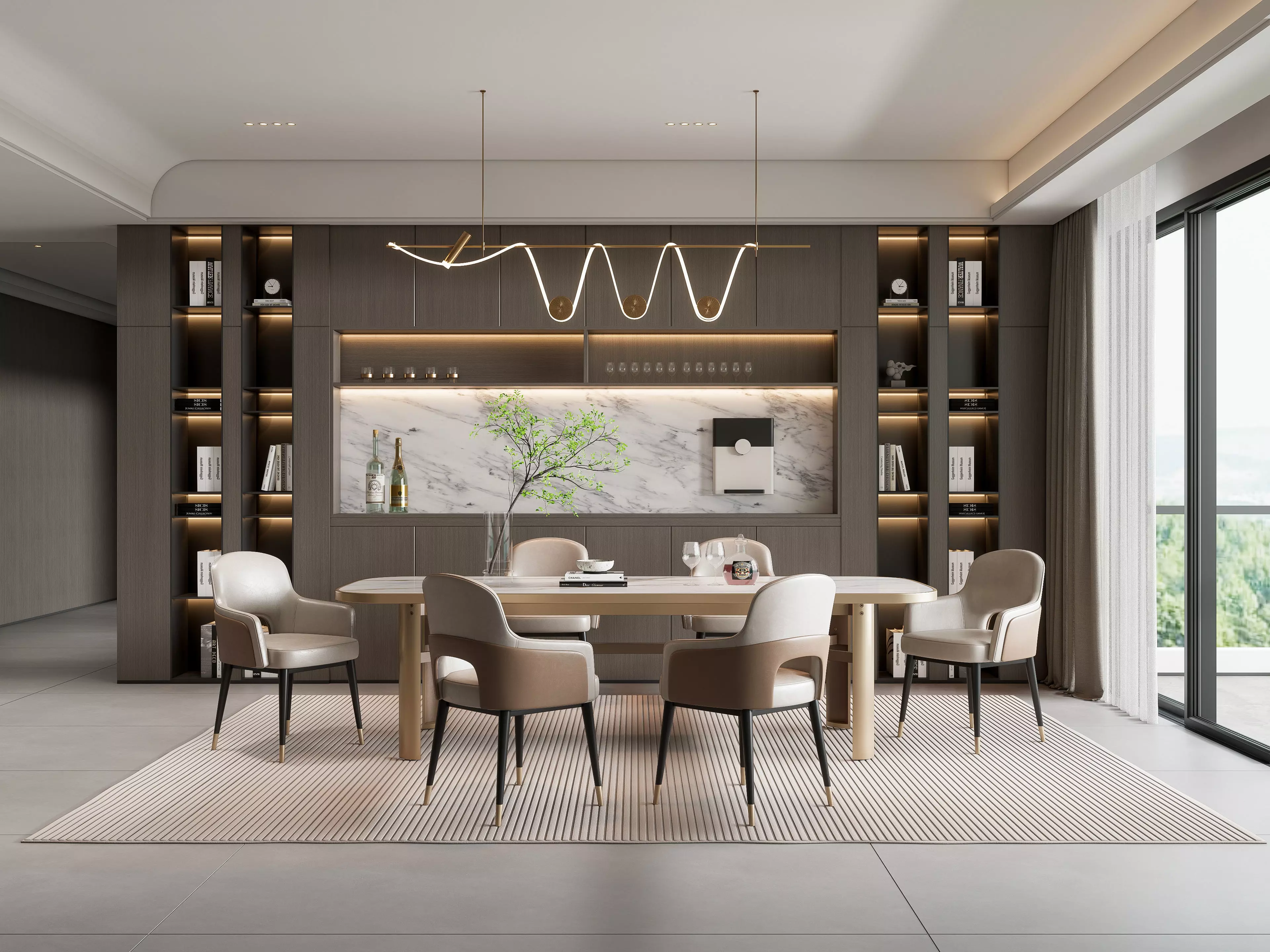The 3D model includes a beautifully designed dining table set with chairs, elegant lighting fixtures, stylish decor elements, and realistic textures that add depth and authenticity to your scenes. Whether you're an architect, interior designer, or a 3D artist working on architectural visualization, this model provides you with a versatile and ready-to-use asset.