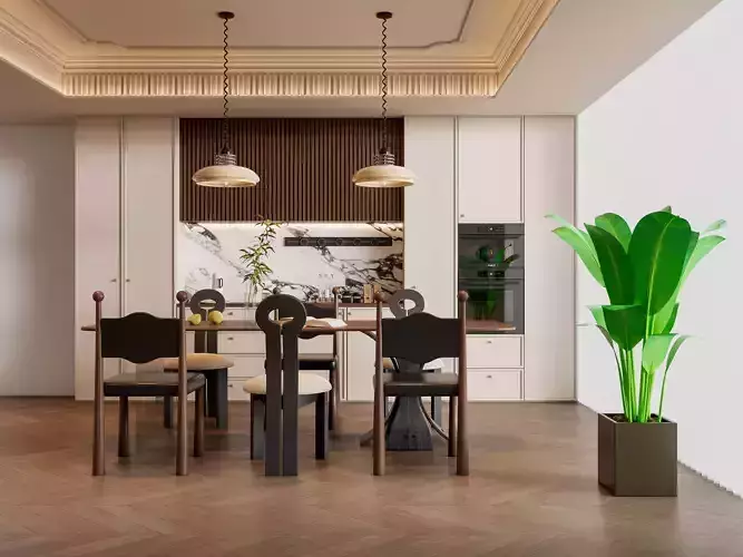 The 3D model includes a beautifully designed dining table set with chairs, elegant lighting fixtures, stylish decor elements, and realistic textures that add depth and authenticity to your scenes. Whether you're an architect, interior designer, or a 3D artist working on architectural visualization, this model provides you with a versatile and ready-to-use asset.