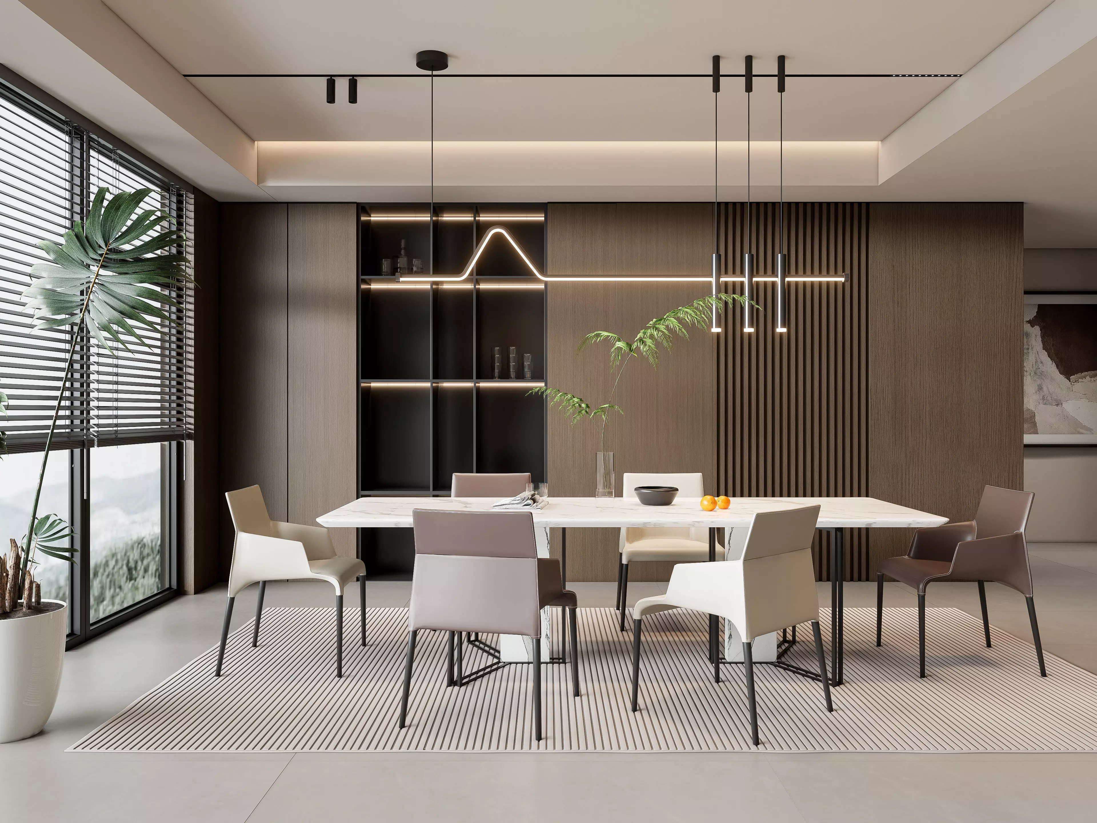 The 3D model includes a beautifully designed dining table set with chairs, elegant lighting fixtures, stylish decor elements, and realistic textures that add depth and authenticity to your scenes. Whether you're an architect, interior designer, or a 3D artist working on architectural visualization, this model provides you with a versatile and ready-to-use asset.