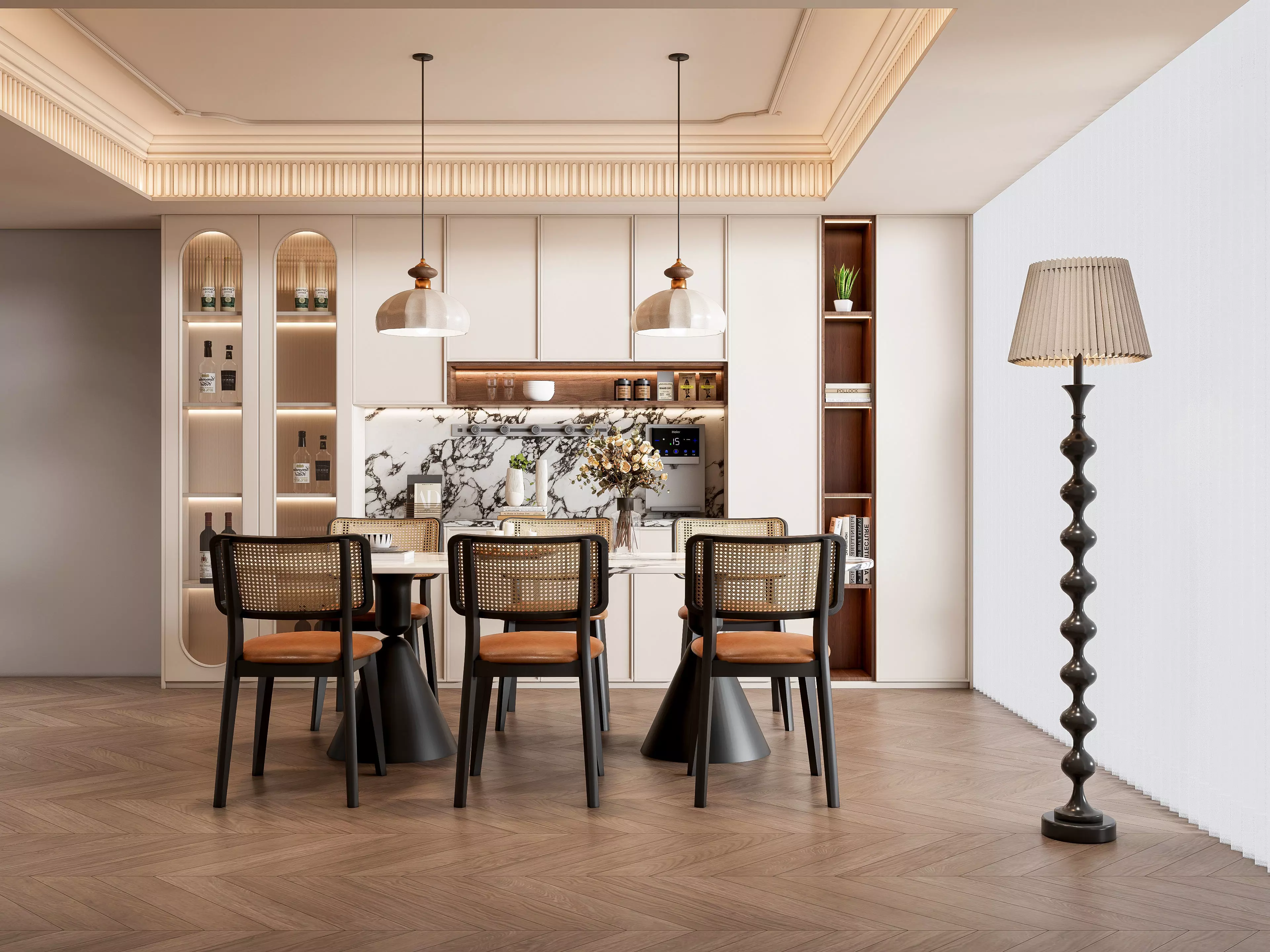 The 3D model includes a beautifully designed dining table set with chairs, elegant lighting fixtures, stylish decor elements, and realistic textures that add depth and authenticity to your scenes. Whether you're an architect, interior designer, or a 3D artist working on architectural visualization, this model provides you with a versatile and ready-to-use asset.