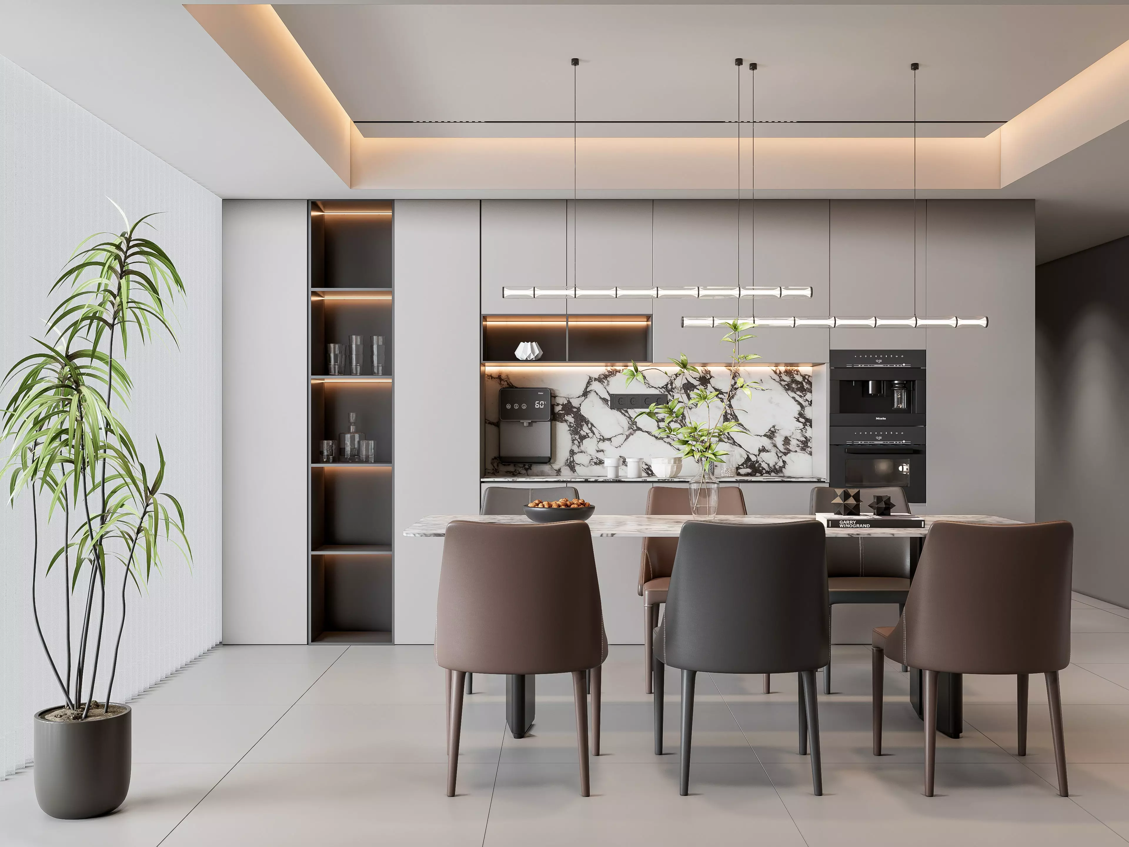 The 3D model includes a beautifully designed dining table set with chairs, elegant lighting fixtures, stylish decor elements, and realistic textures that add depth and authenticity to your scenes. Whether you're an architect, interior designer, or a 3D artist working on architectural visualization, this model provides you with a versatile and ready-to-use asset.